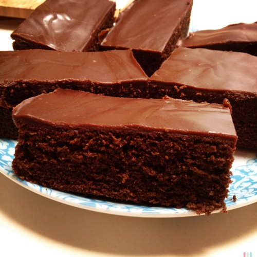 …is chocolate cake for Luca’s birthday! It was whipped up in the food processor using our chocolate pound cake recipe…
