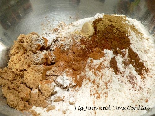 1. In a large mixing bowl, whisk together the flour, baking powder, sugar, salt and spices. Add the butter and rub it in until the mixture resembles coarse breadcrumbs.