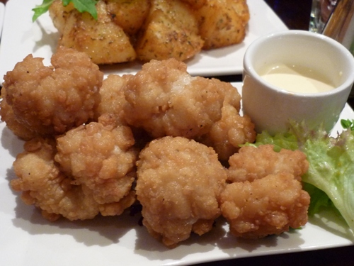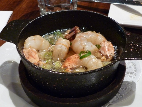 The cafe was packed last night, so I didn’t get to take pictures of their pretty new decor, but we did have a  great feed, including selections from their new tapas menu. There were garlic king prawns, which came out sizzling…