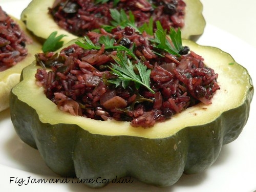 Instead, I stuffed the two large ones with rice, using the purple rice I’d bought at Alfalfa House and following this recipe from Yotam Ottolenghi’s Plenty…
